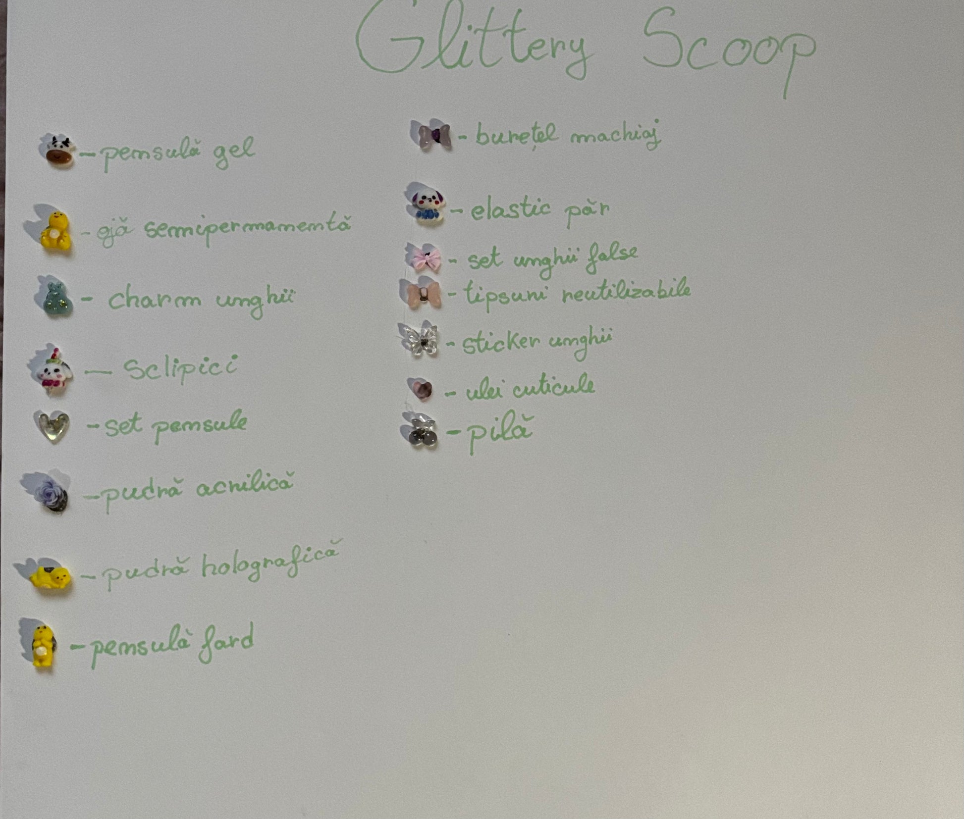 Cu Glittery Scoop, fiecare extragere e o aventură plină de mister și magie! 🪄 În interior poți găsi obiecte complet aleatorii, de la accesorii strălucitoare, produse beauty mini, charm-uri drăguțe, sclipici, stickere sau mici comori neașteptate 💖 – totul ales la întâmplare, dar mereu cu o notă glittery și fun!